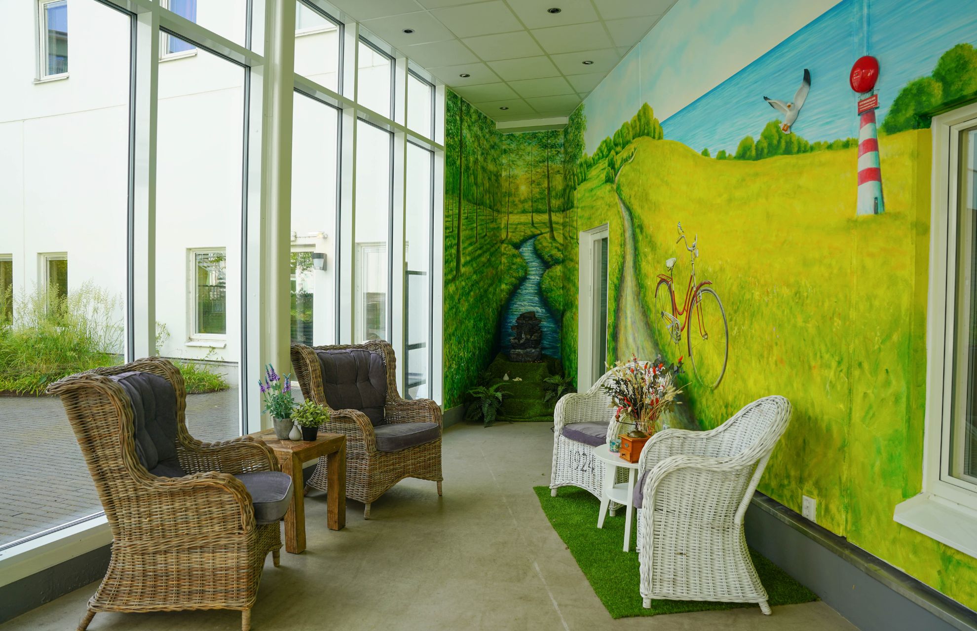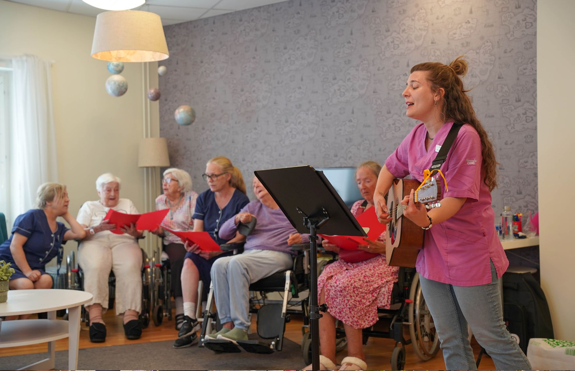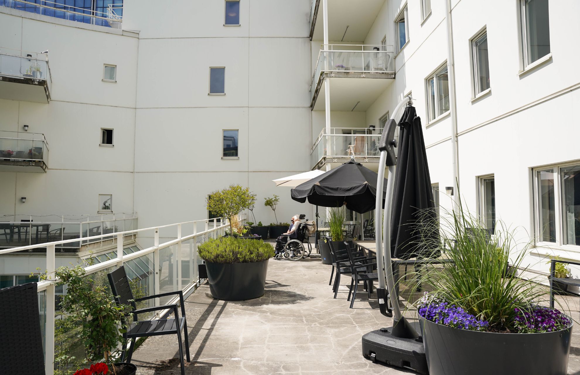 På varje boendenhet finns kök, matsal och allrum. Ytorna är ljusa, generöst tilltagna och med en smakfull hemlik inredning. På plan 2 finns vår träningslokal och på plan 3 finns sjuksköterskeexpeditionen.