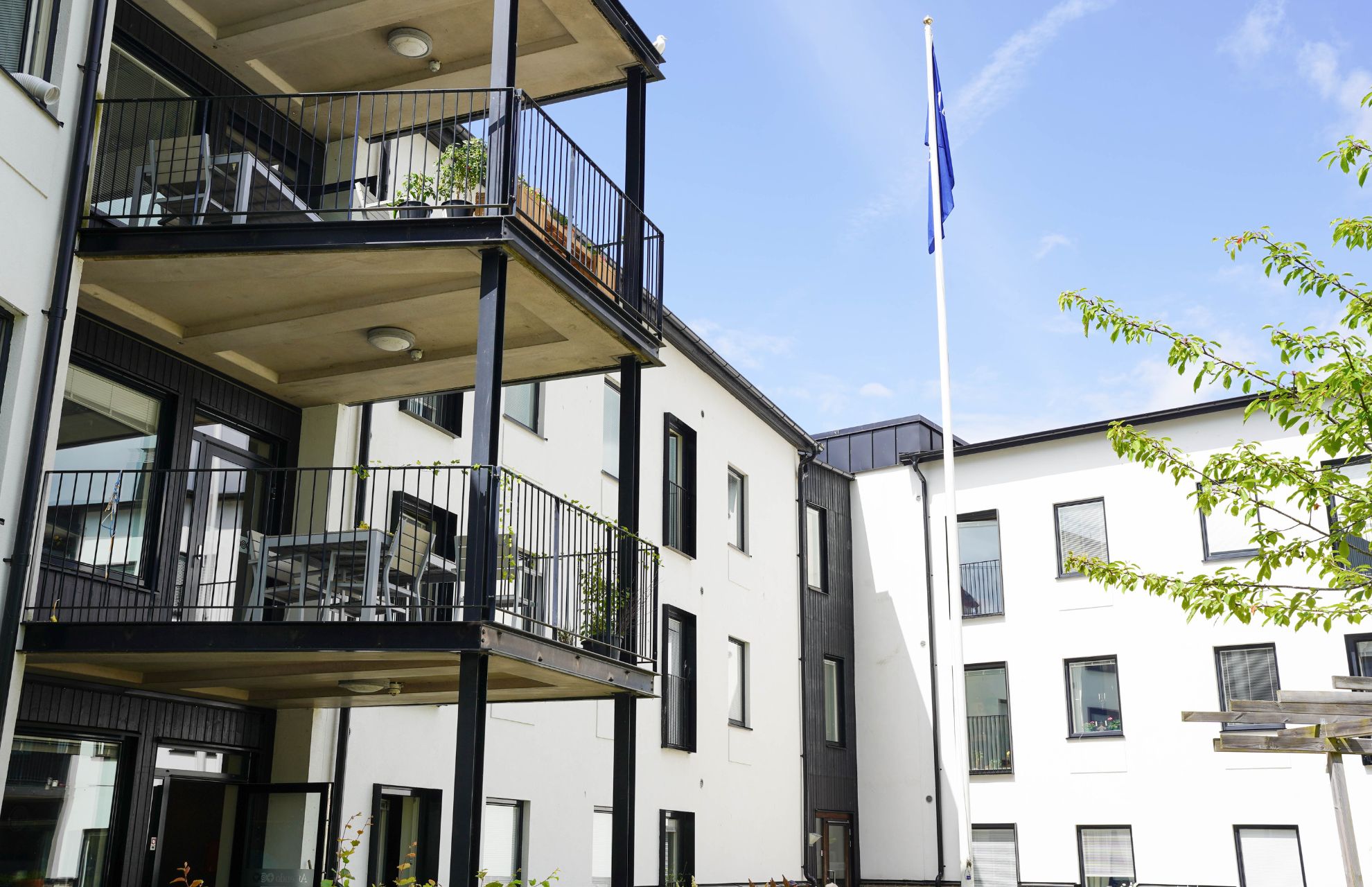 Attendo Mejerigatan är byggt och anpassat för att fungera både som demensboende och äldreboende med totalt 54 lägenheter fördelat på tre våningsplan med nio lägenheter i varje enhet.