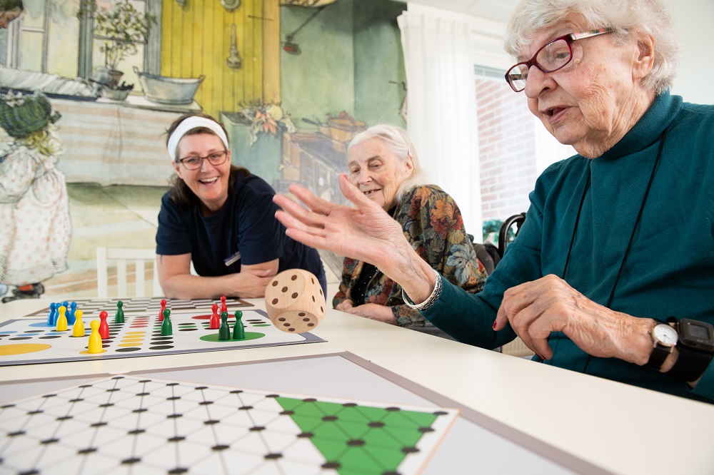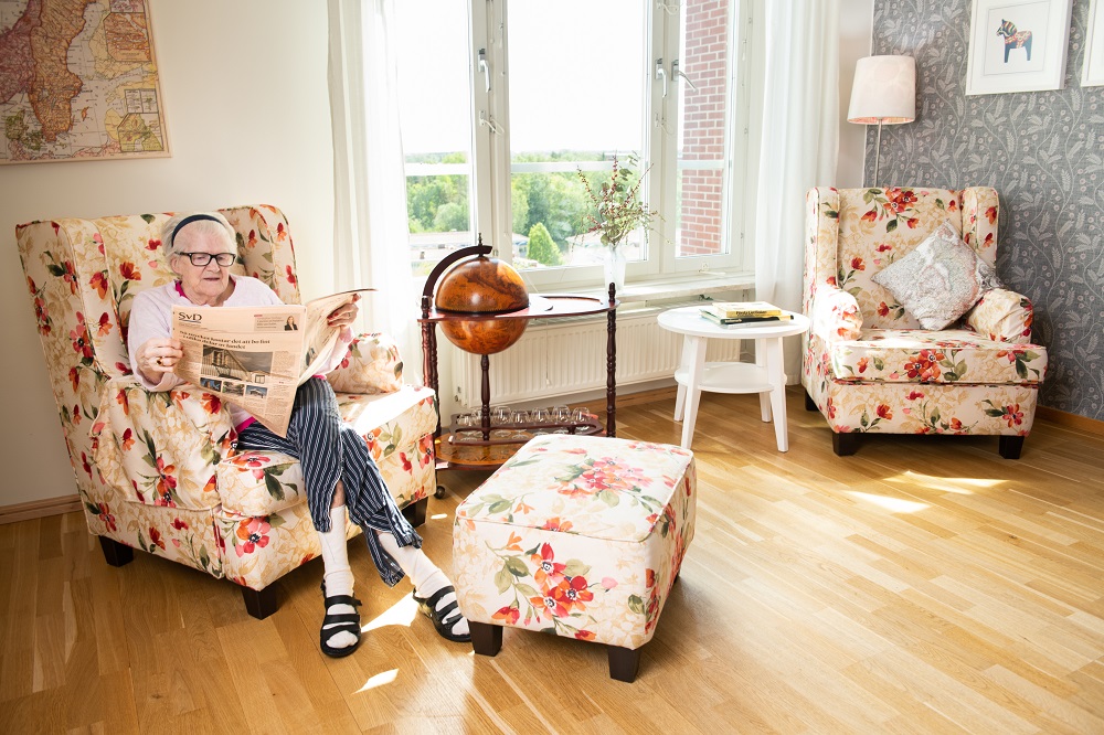 Här finns 58 lägenheter fördelade på 2 plan med möjlighet till parboende i vissa lägenheter med somatisk inriktning. Här bor du i egen lägenhet med tillgång till gemensamma utrymmen för måltider, sällskap och umgänge. Lägenheten är utrustad med en höj- och sänkbar säng och sängbord, ett trinettkök, kylskåp samt rymligt hygienutrymmen. I övrigt inreder du själv som du önskar.