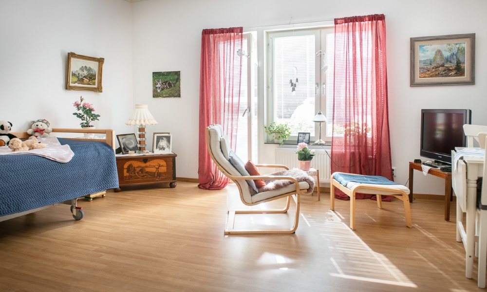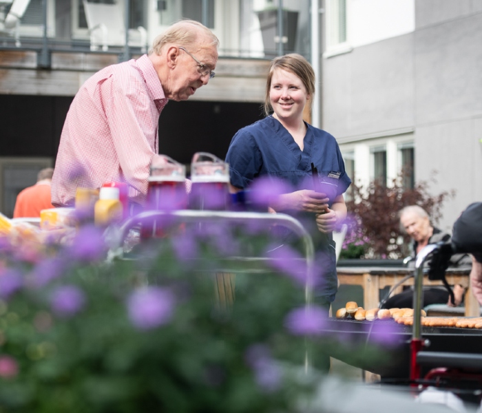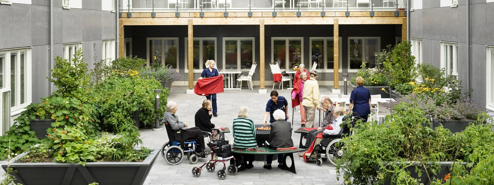 Modernt och naturnära äldreboende med inriktning Utevistelse & Trädgård. Vi har en stor och fin trädgård med fruktträd och mysiga uteplatser med rum för måltider och samvaro. Under de varmare månaderna har vi ett hönshus som vi tar hand om och plockar fina ägg som hönsen lagt. Vi har även två finskspråkiga avdelningar där vi tar till vara på den finska kulturen, traditionen, maten och språket.