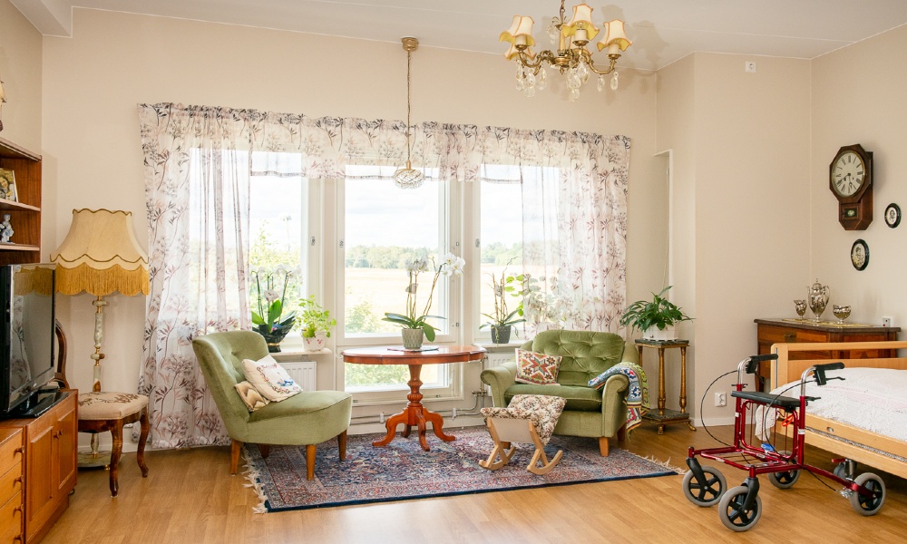 Här finns totalt 54 lägenheter. Vi har två enheter med demensinriktning och fyra enheter med somatisk inriktning. Varje enhet innehåller nio lägenheter och i anslutning till lägenheten finns ett samvarorum och matsal.