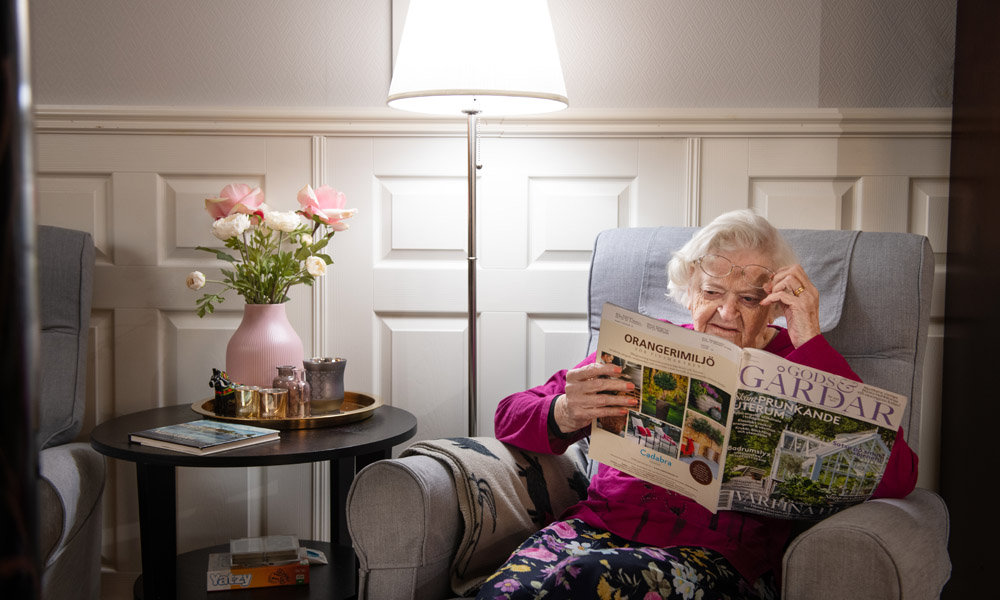 Naturnära äldreboende med vacker trädgård för dig som har ett beviljat biståndsbeslut ifrån kommunen. Här finns ett brett utbud av aktiviteter där utevistelse och promenader erbjuds dagligen.